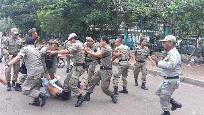 Sekitar 10 anggota Satuan Polisi Pamong Praja Kota Semarang mengeroyok seorang anggota Polrestabes Semarang, saat penertiban pedagang, di kawasan Jalan Pahlawan Semarang, Minggu (26/6/2016) malam.